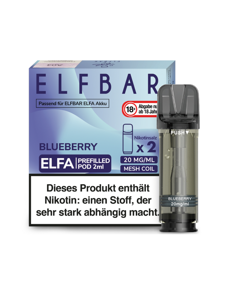 Die ElfBar ELFA Pods sind befüllte Closed Pods, sie dienen als Ersatzpods für das ELFA Pod Kit System. Die Einwegpods haben einen Nikotingehalt von 20mg/ml. Der 2ml große Liquidpod ist komplett befüllt und ermöglicht, je nach Zugverhalten, ca. 600 Züge. Dies entspricht in etwa 60 Tabakzigaretten, wenn man davon ausgeht, dass an einer Zigarette 10 mal gezogen wird. Wenn das Liquid leer ist dann können sie den Pod einfach gegen einen neuen Pod austauschen, sie müssen nichts nachfüllen oder einstellen. Durch eine magnetische Verbindung hält der Pod super in der Vape. Daher ist es auch für Einsteiger geeignet. In diesen Pods ist ein Mesh Coil Verdampfer verbaut und er hat eine 3-Zug Kindersicherung.